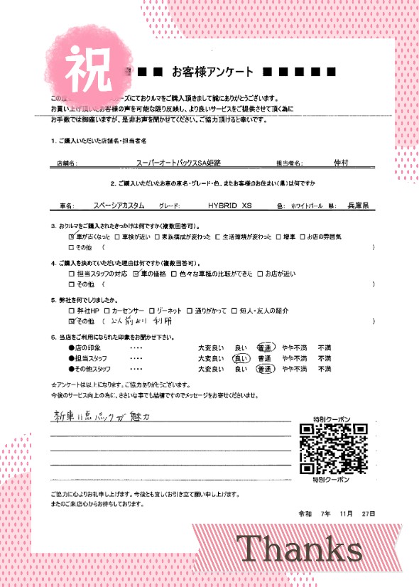 SA姫路店 - 納車日:2025/11/27