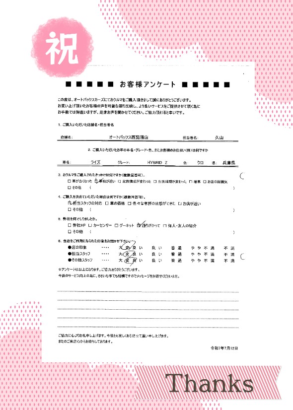 当店のライズHVのご購入誠にありがとうございます!
