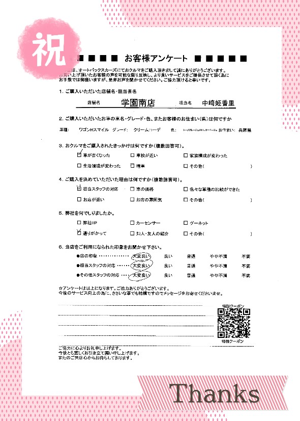 11点パックと低金利に満足頂きご購入して頂きました😊