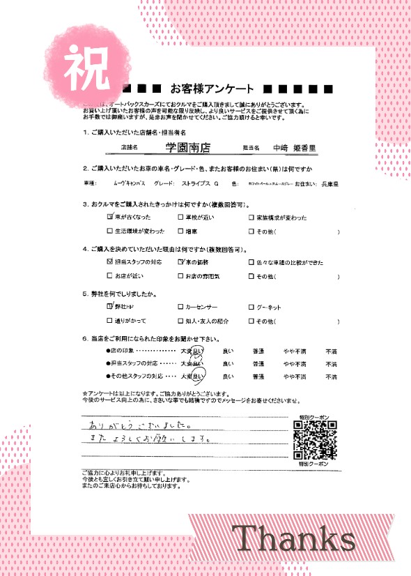 11点パックと低金利に満足頂きご購入して頂きました😊