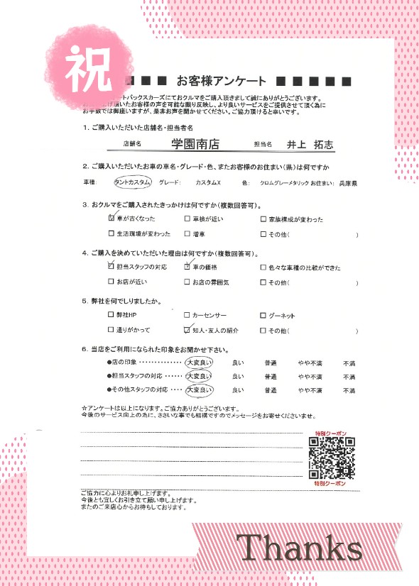 この度は当店で新車タントカスタムの