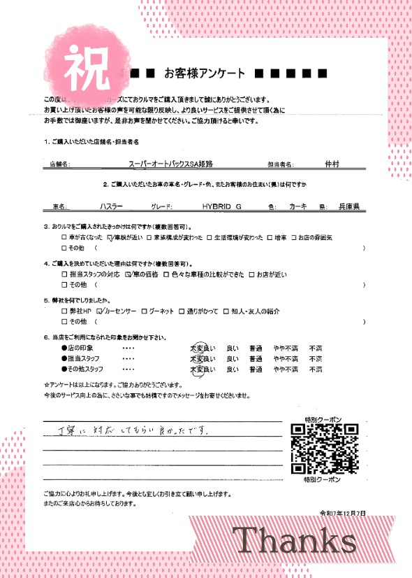 SA姫路店 - 納車日:2025/12/20